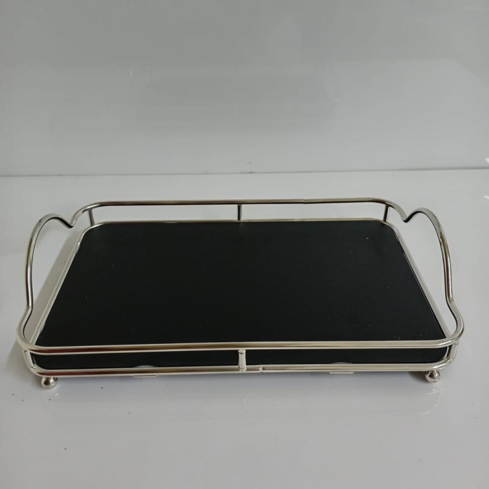 صينية تقديم و ضيافة مستطيلة أكريليك اسود بمقبض ستانلس ستيل فضي 35في22سم